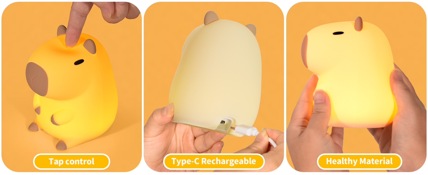 Soft, Touch-Sensitive Design: The Capybara Silicone Night Lamp features a user-friendly touch-sensitive surface for easy