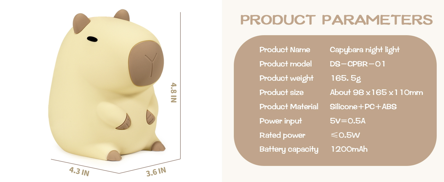 in a warm night's sleep with the Capybara night light,this kids'silicone night light has undergone rigorous testing and is constructed from