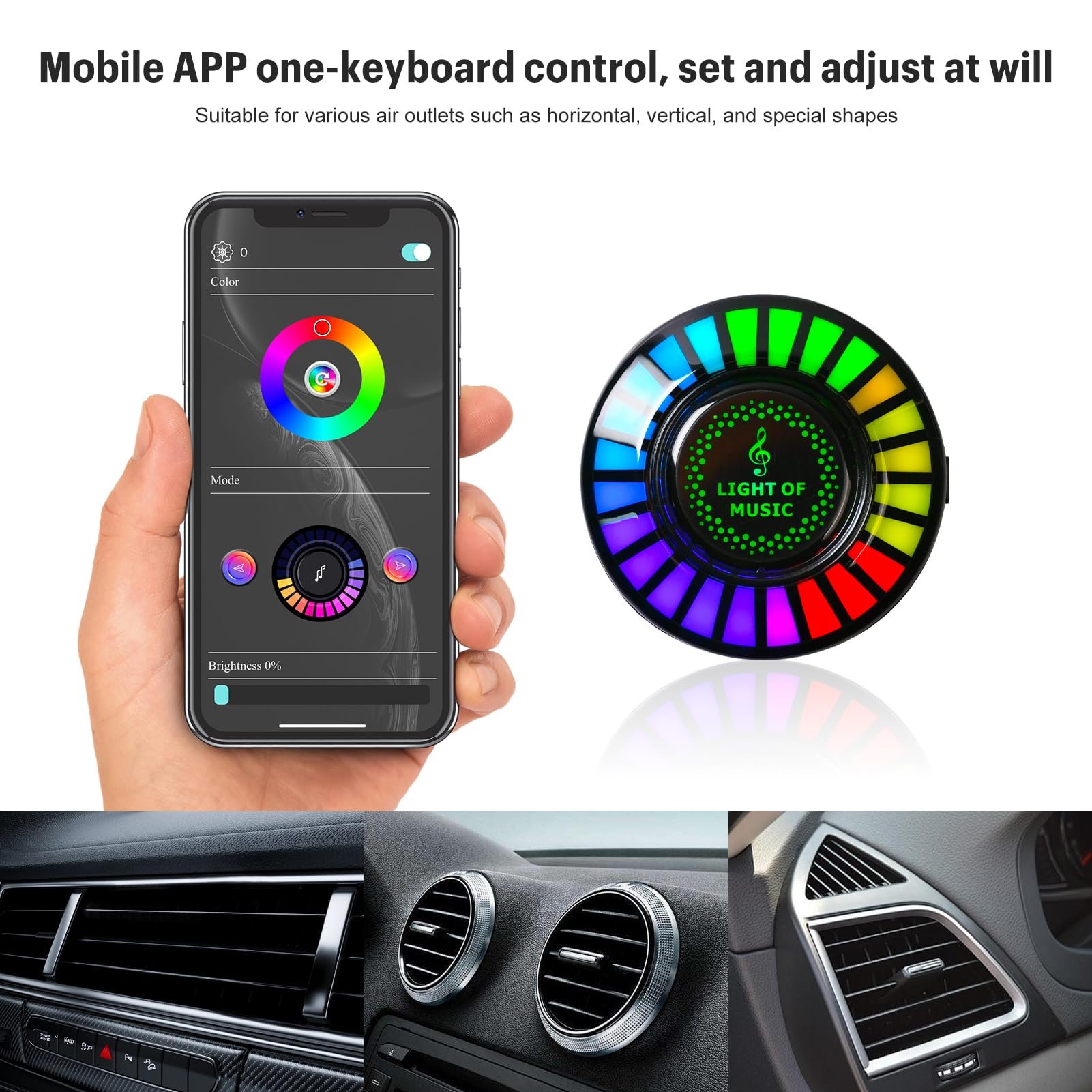 - 【Strong Magnetic Attraction】Utilizing a new generation of ring magnetic attraction technology, this car music rhythm light is structurally robust with multiple magnets in a circular array making their attraction uncompromisingly strong. Capable of dealing with bumpy roads, you’ll find it remains in place. And with magnetic pads compatible with a variety of devices, you can attach it almost anywhere.