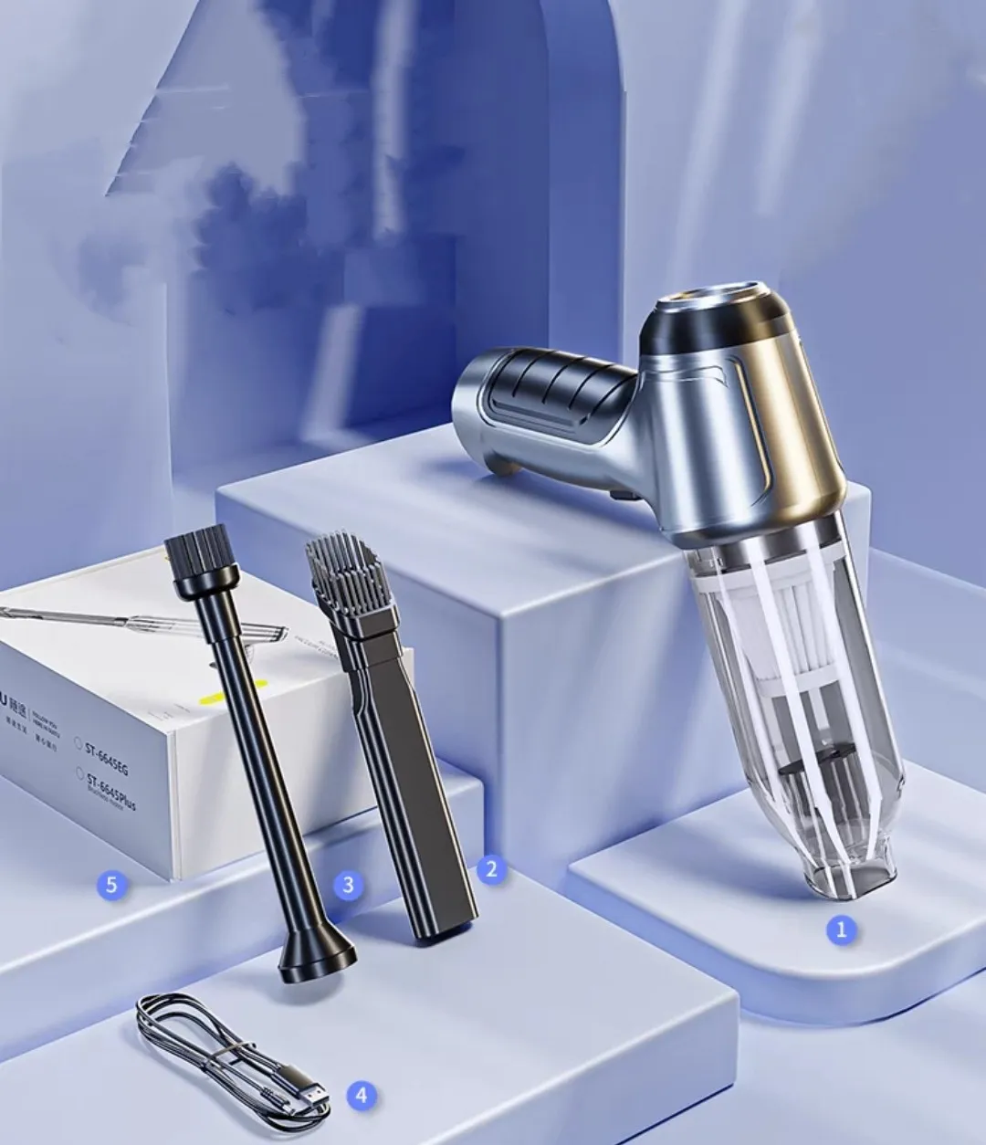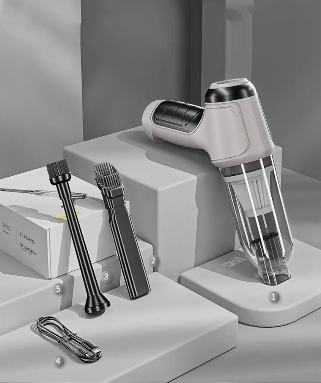 The vacuum features strong suction power, providing efficient cleaning of dirt, debris, and pet hair, even in hard-to-reach areas of your car.