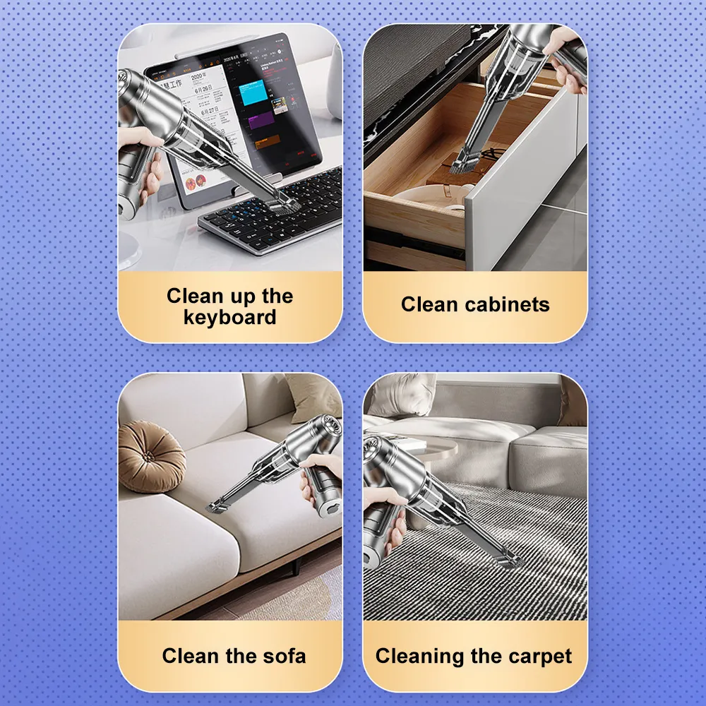 The Car Cordless Vacuum Cleaner stands out for its convenience, powerful suction, and versatility. Unlike traditional corded vacuums, this cordless model offers freedom of movement, allowing you to clean every corner of your vehicle without worrying about power outlets or tangled cords. Its multiple attachments ensure you can tackle any cleaning task, while the rechargeable battery and lightweight design provide ease of use.