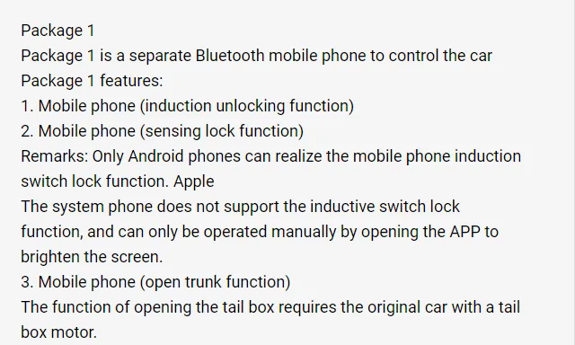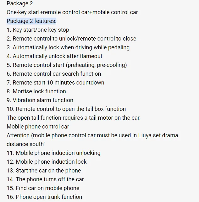 Specifications: (Single mobile phone control car) package 1, (one-key start + remote control car + mobile phone control car) package 2