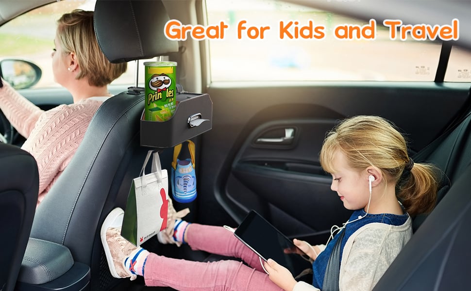 Keeps essential items within easy reach of backseat passengers without distracting the driver or cluttering the cabin.