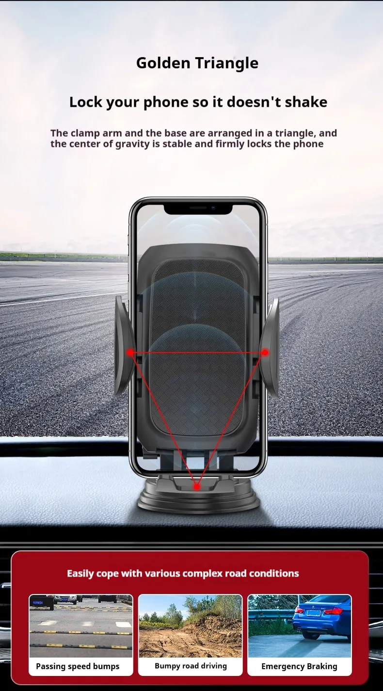 - Strong Suction Cup – Secure attachment to dashboards or windshields.
