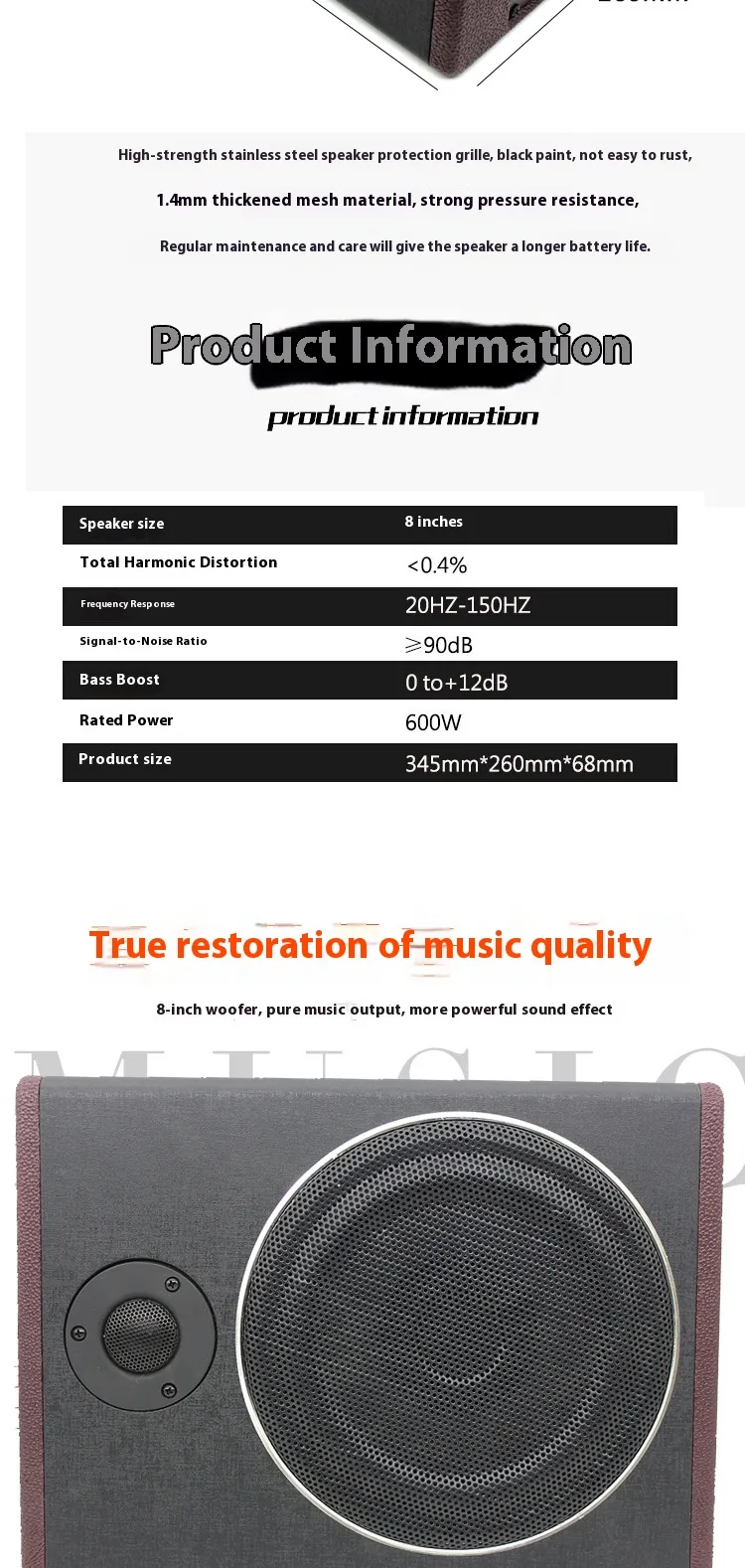 - High-Quality Sound: Delivers deep, rich bass, enhancing the overall sound quality and adding a dynamic punch to your music without distortion.