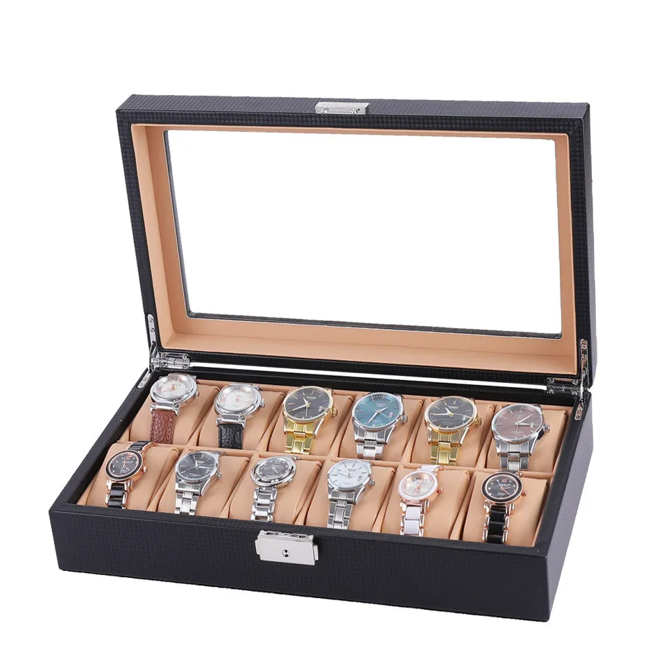 Enhance your watch collection today with the Carbon Fiber PU Leather 12 Digit Watch Case and enjoy the perfect blend of luxury, protection, and organization