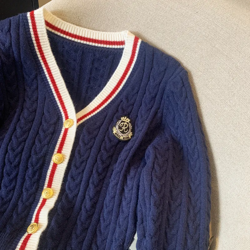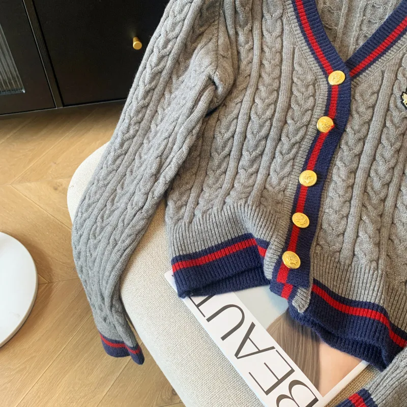 El cárdigan de punto con cuello en V y colores contrastantes es una prenda imprescindible para quienes aman combinar el diseño clásico con la moda contemporánea. Con su corte estilizado y su intrincado patrón de punto trenzado, este cárdigan no solo aporta un toque de calidez, sino que también realza tu estilo. Ya sea que lo uses sobre una blusa sencilla, con jeans para un look casual o para una salida nocturna, este versátil suéter es perfecto para cualquier ocasión. Los detalles de color contrastante le dan un toque fresco al clásico cárdigan de punto, convirtiéndolo en una prenda destacada en tu armario.