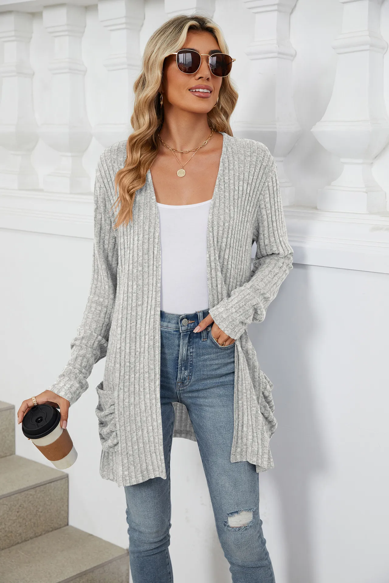 Mejora tu estilo de capas con el cárdigan de punto de manga larga con bolsillo en color liso. Con su combinación de comodidad, estilo y practicidad, este cárdigan es el complemento perfecto para cualquier armario. No te pierdas esta versátil pieza: añádela a tu colección hoy mismo y disfruta de la combinación perfecta de calidez y estilo. src="https://cf.cjdropshipping.com/17219520/2407260604000329800.jpg?x-oss-process=image%2Fformat%2Cwebp" />
