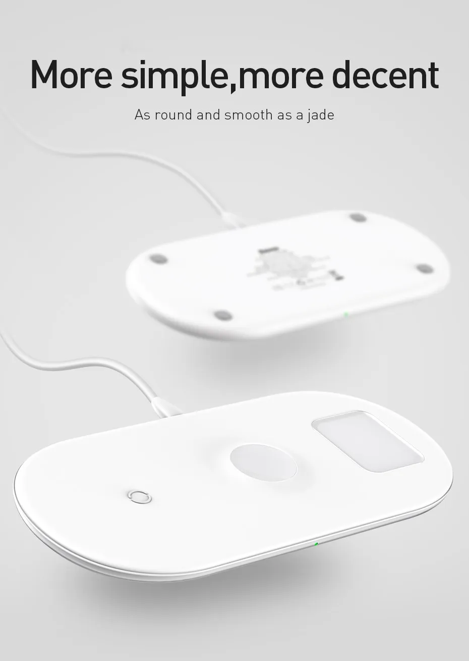 La Estación de Carga Inalámbrica 3 en 1 es perfecta para usuarios que tienen varios dispositivos inalámbricos. Con la capacidad de cargar su teléfono inteligente, reloj inteligente (como Apple Watch o Samsung Galaxy Watch) y auriculares inalámbricos (como AirPods u otros auriculares Bluetooth) simultáneamente, esta versátil base de carga brinda máxima comodidad y eficiencia a su configuración de hogar u oficina.