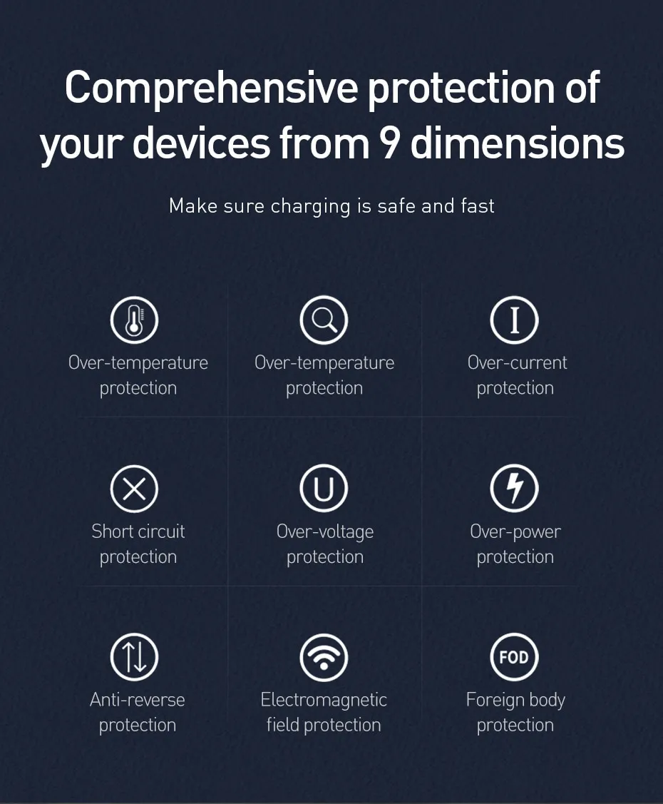 Con funciones como protección contra sobrecargas, control de temperatura y una superficie antideslizante, tus dispositivos estarán seguros mientras se cargan. No tendrás que preocuparte por el sobrecalentamiento ni por daños, lo que la convierte en una solución de carga fiable y segura.