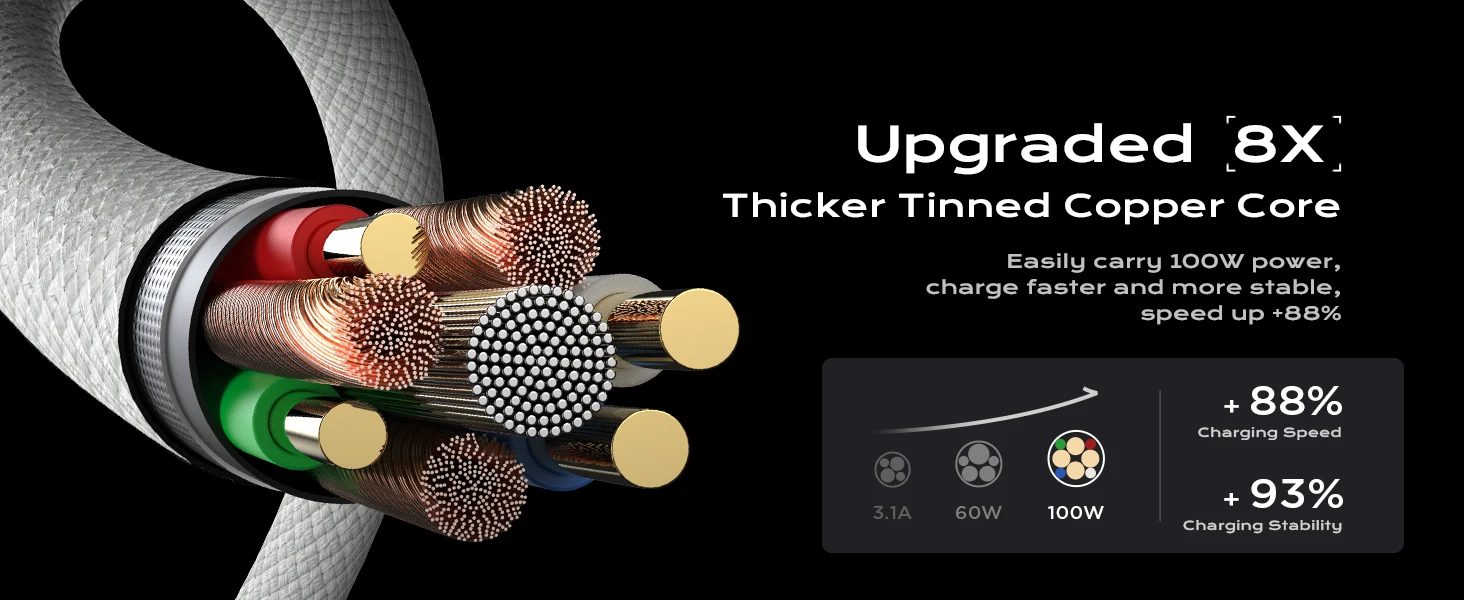 La velocidad de transferencia de datos de este cable USB C es de hasta 480 Mbps entre dos dispositivos, lo que significa que puede descargar 100 canciones cada 5 segundos.