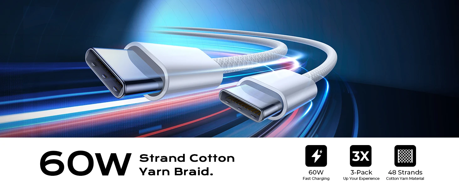 Cargador rápido PD original de 60 W - Cable USB-C a Tipo-C de 6 A