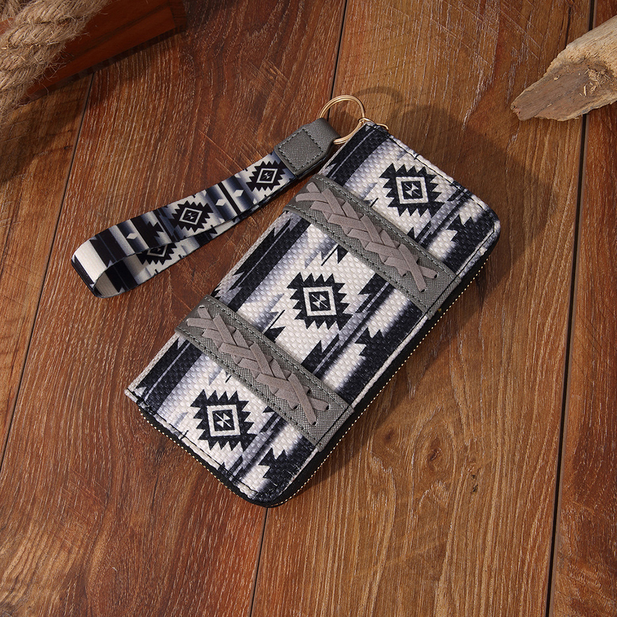 Cartera y tarjetero de mano estilo bohemio con estampado vintage de algodón y lino para mujer