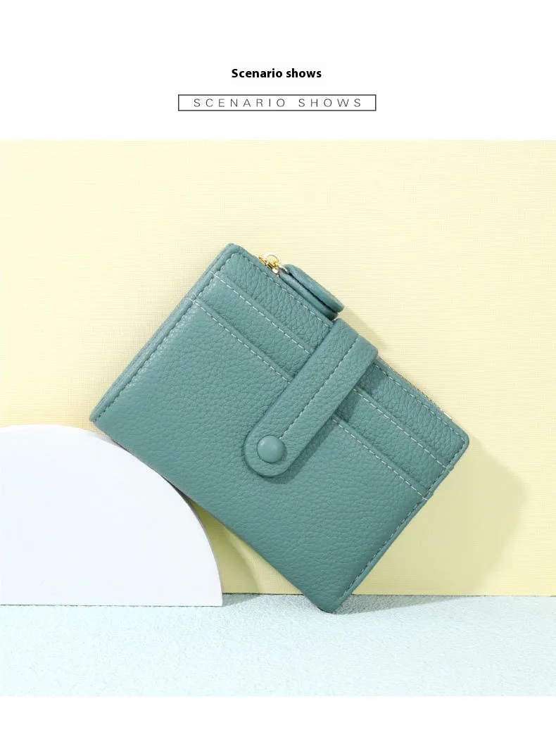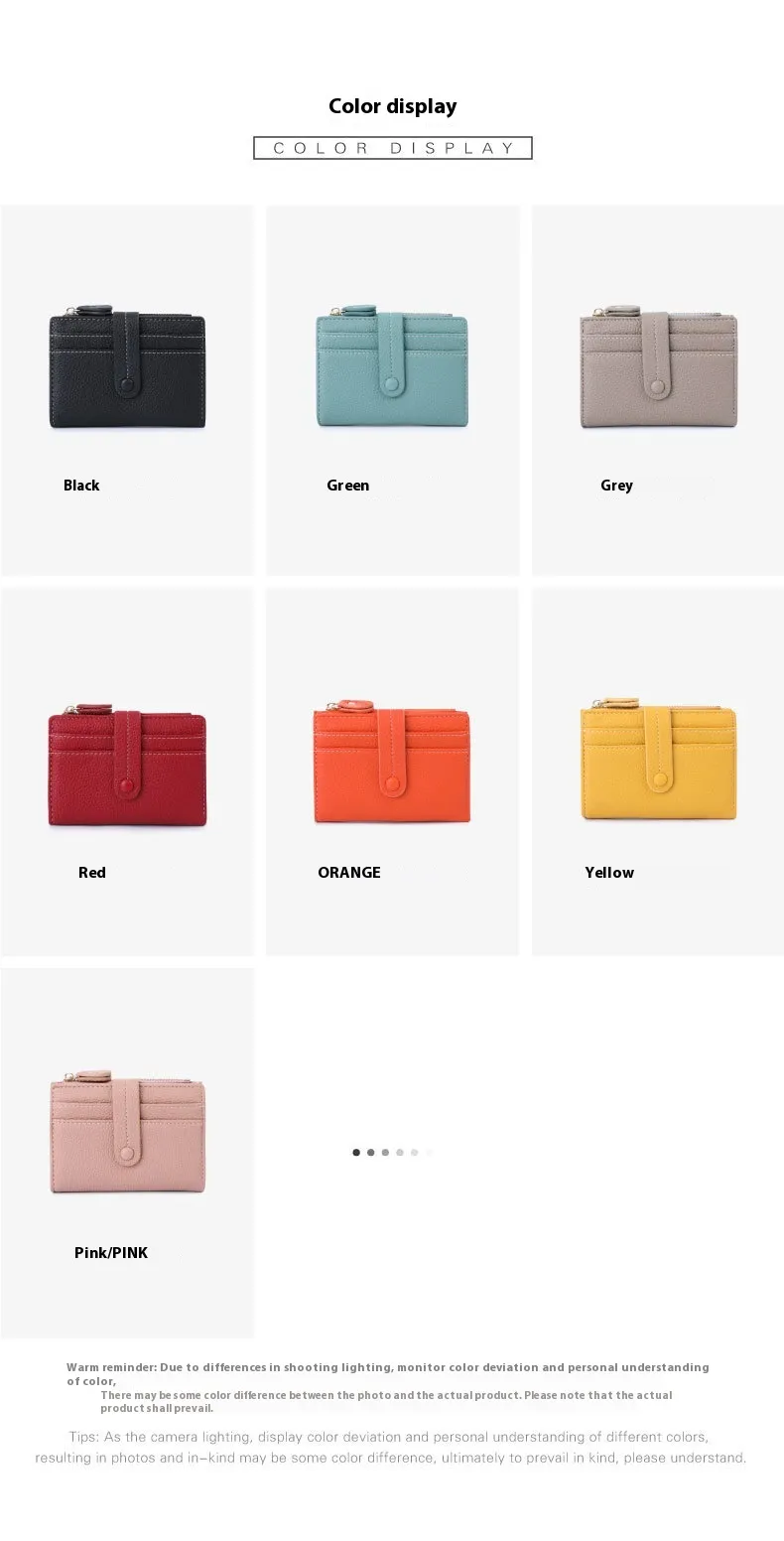 1. Cartera pequeña Material: Nuestras carteras pequeñas son de cuero de primera calidad con cierre de botón, cremallera suave y forro de poliéster.