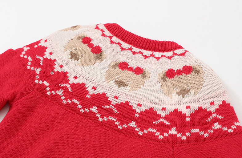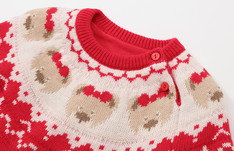 The most eye-catching feature of this sweater is its playful cartoon bear print. With its cute bear face and soft pastel colors, this sweater instantly brings a smile to your little one’s face. Whether your child loves animals or is simply drawn to fun, colorful designs, the bear motif adds a charming touch to her outfit. The design is perfect for both casual wear and special occasions where your little one wants to show off her fun-loving personality.