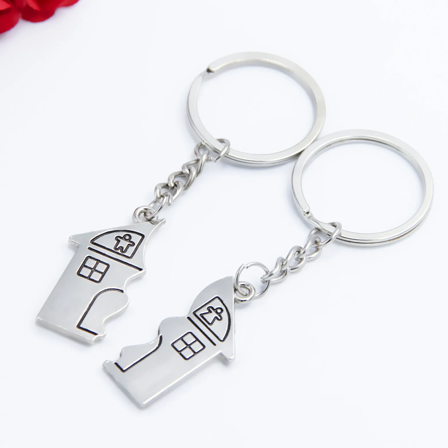 Cartoon Creative House Shape Couple Travel Commemorative Alloy Keychain