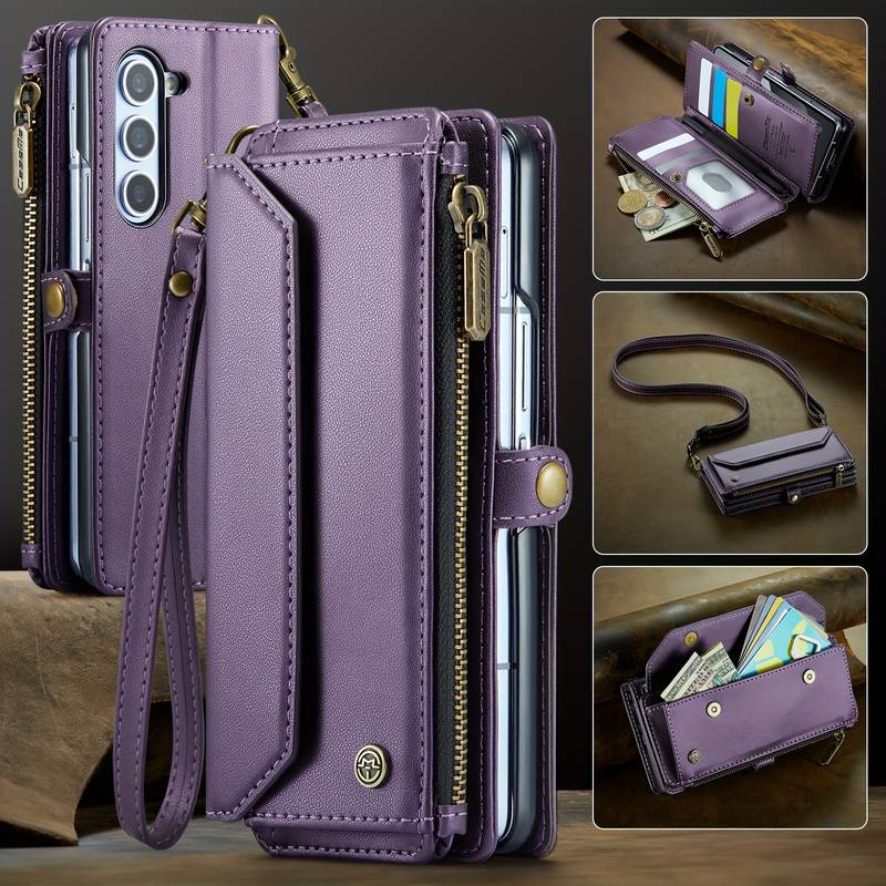 CaseMe Trendy Phone Cover for Samsung Galaxy Z Fold Series – Wireless Charging, RFID Protection, and Multifunctional Wallet with Adjustable Strap