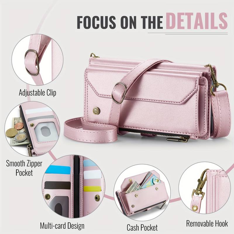 The adjustable shoulder strap and wrist rope make it easy to carry your phone and wallet, whether you're commuting, traveling, or simply out