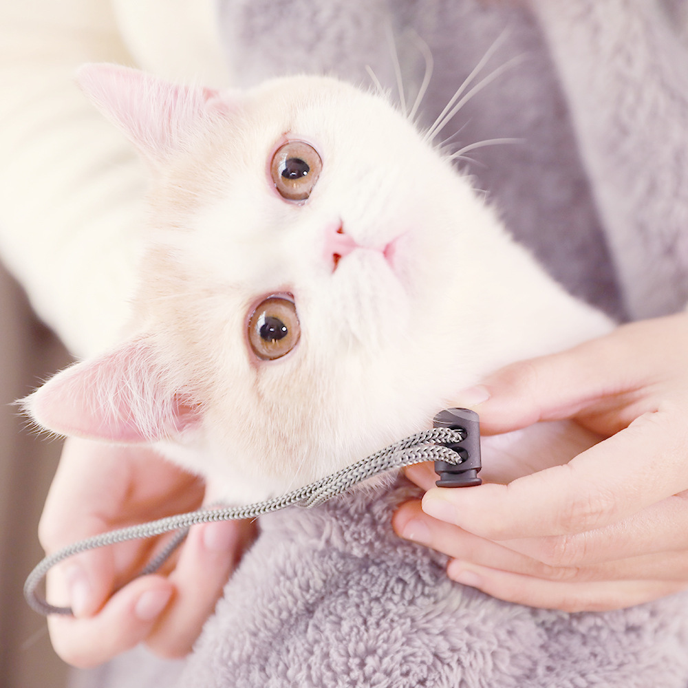 Carefully place your pet inside the backpack, securing the safety leash to their harness or collar.