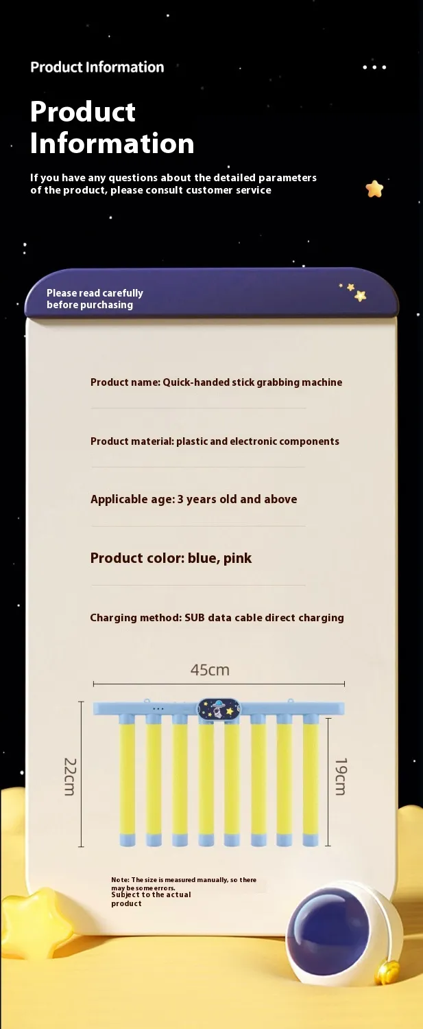 Our Catching Sticks Game toys have 3-speed gears, 1 gear when turned on, and 2 and 3 gears for slow, medium, and fast speeds so that you can adjust the speed at any time. Multiple speeds make it suitable for children of all ages and skill levels.