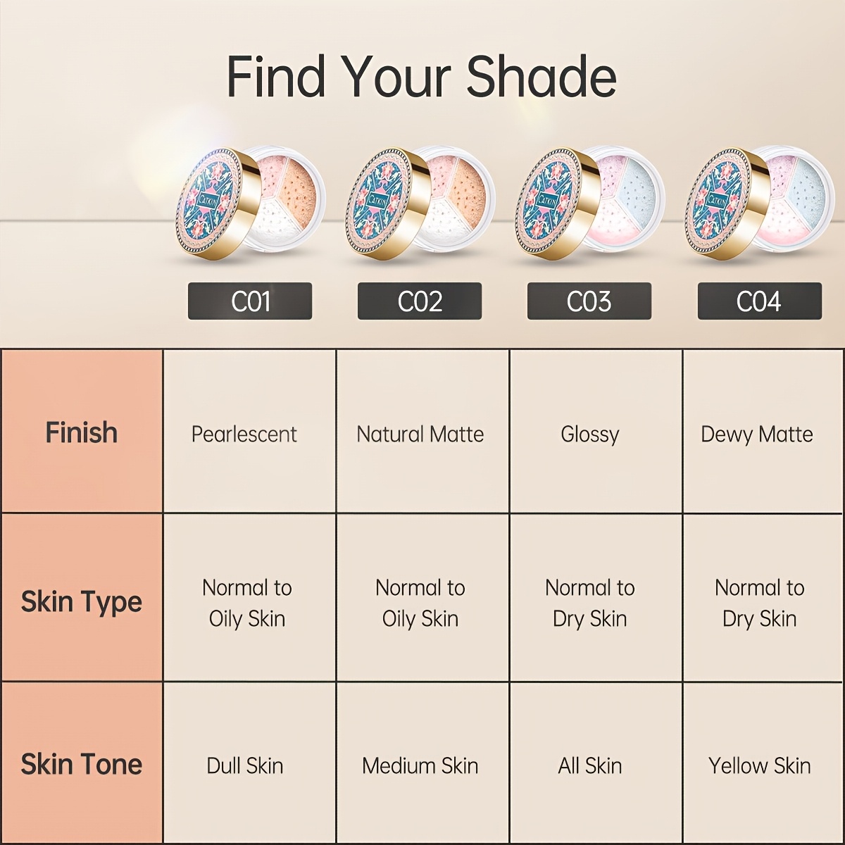 The loose powder absorbs excess oil, ensuring a matte, shine-free finish that lasts all day without touch-ups.