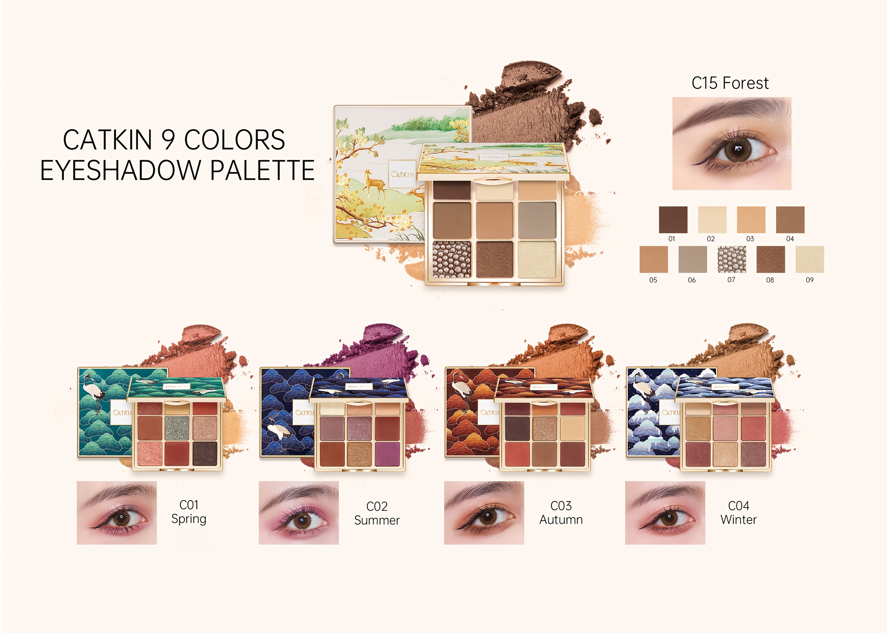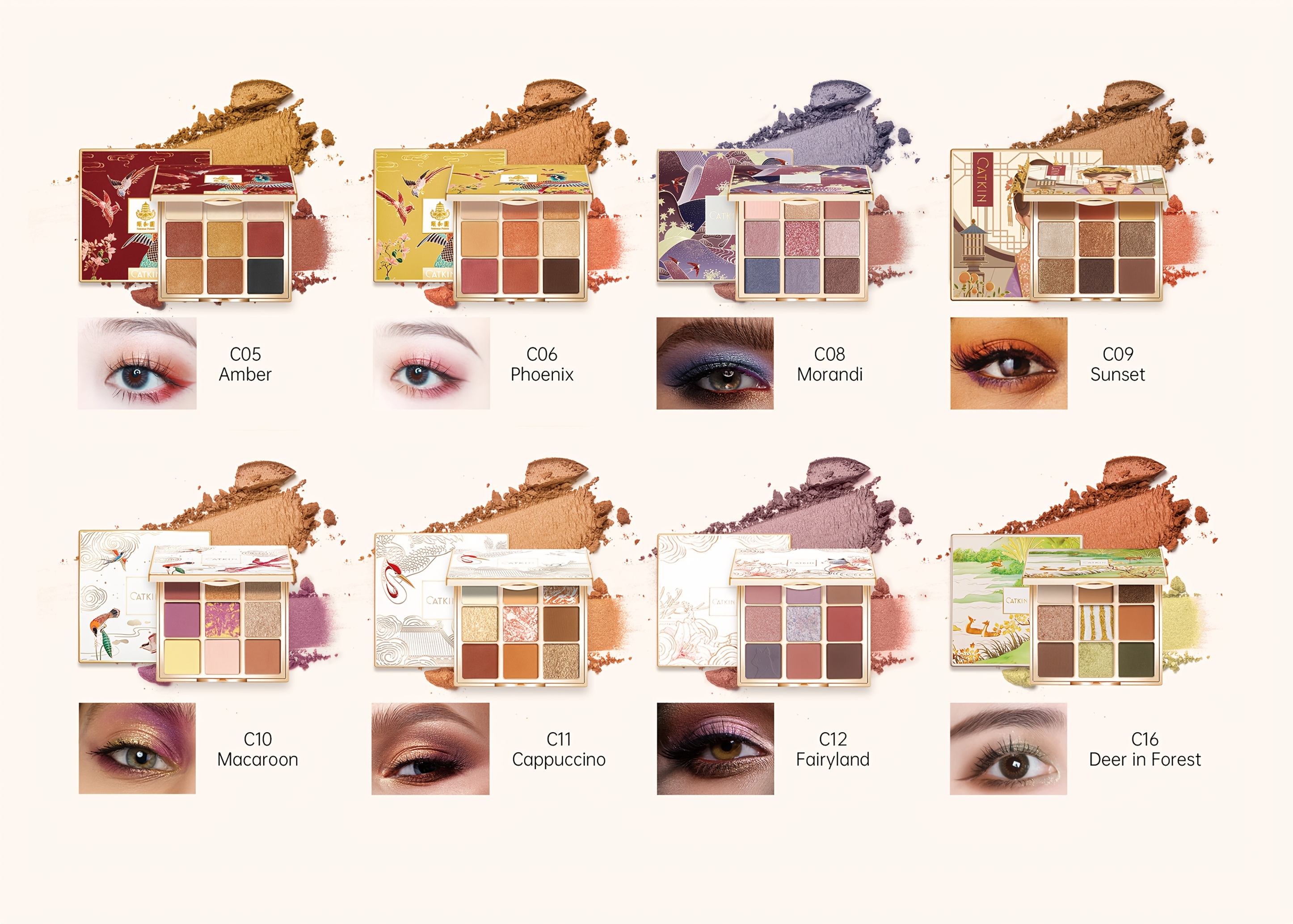 【Super Blendable】 The soft, blendable nature and easy application make CATKIN eyeshadow suitable for beginners. Use these super blendable, velvety CATKIN eyeshadow palettes solo or layer to create endless eye makeup looks, from a monochromatic wash of color to bold, smoky eyes. It can always bring you different creative look in different occasions.