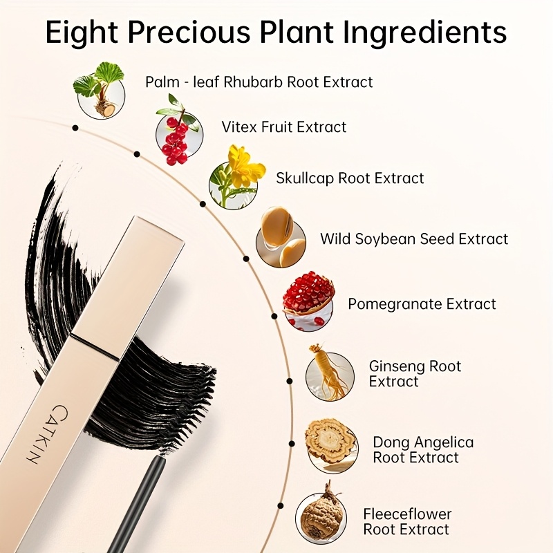 【FRIENDLY TO DELICATE EYES】 CATKIN nourish primelash mascara selected natural plant ingredients, including pomegranate peel extract, angelica root extract, ginseng extract, polygonum multiflorum root extract and so on, which natural ingredients allow you to maintain and care for eyelashes while applying makeup. It revitalise and nourish every eyelash, from root to tip.