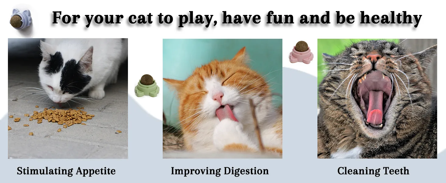 - [Happy]: The chemicals released by catnip can stimulate the cat's pheromones, causing the cat to hallucinate, become excited, and be more intimate with the owner. And it is rotatable for your cat to play with it, have fun and be healthy.