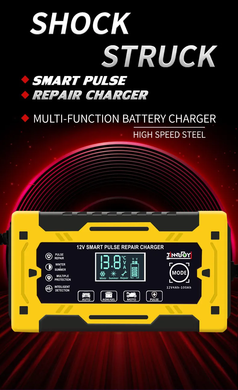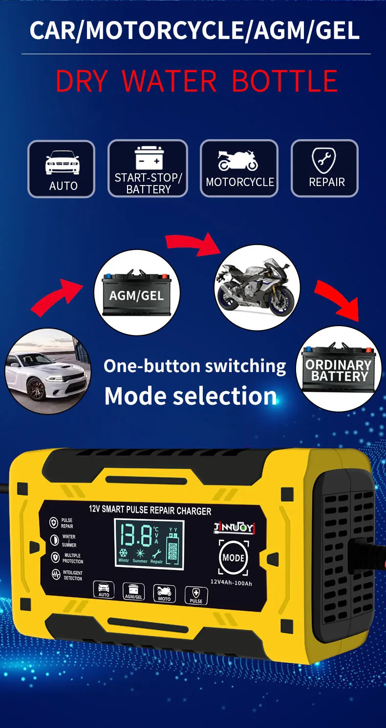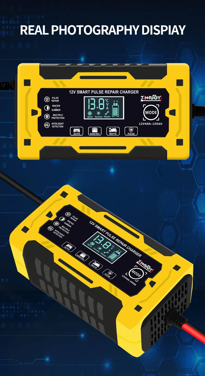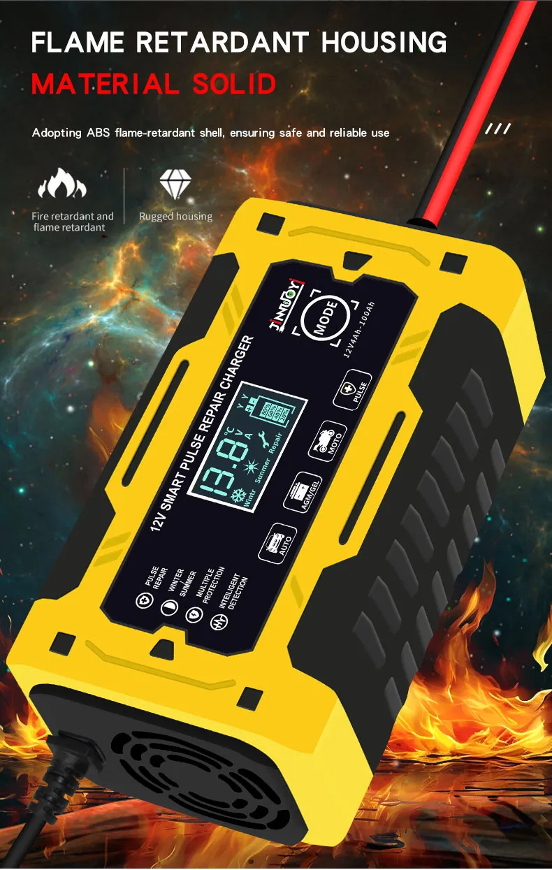 In conclusion, the 12V Car Battery Charger is a must-have for every car owner. It provides fast and efficient charging while offering advanced safety features such as automatic shutoff and reverse polarity protection. Whether you're using it at home, in the garage, or taking it with you on road trips, this charger is designed to make your life easier and ensure your car’s battery stays in excellent condition. Never worry about a dead battery again with the 12V Car Battery Charger.
