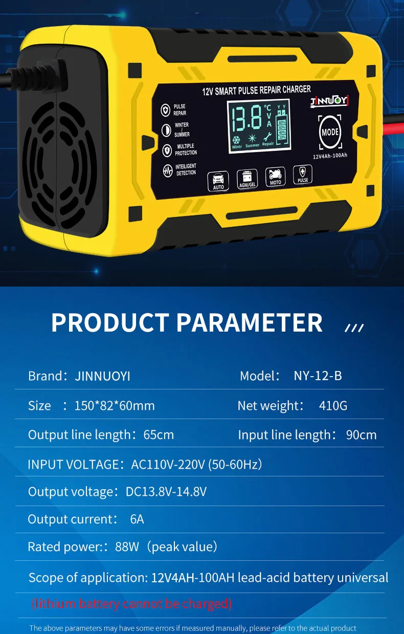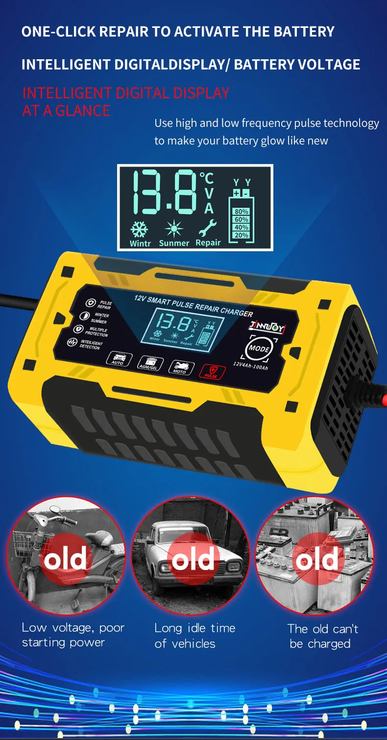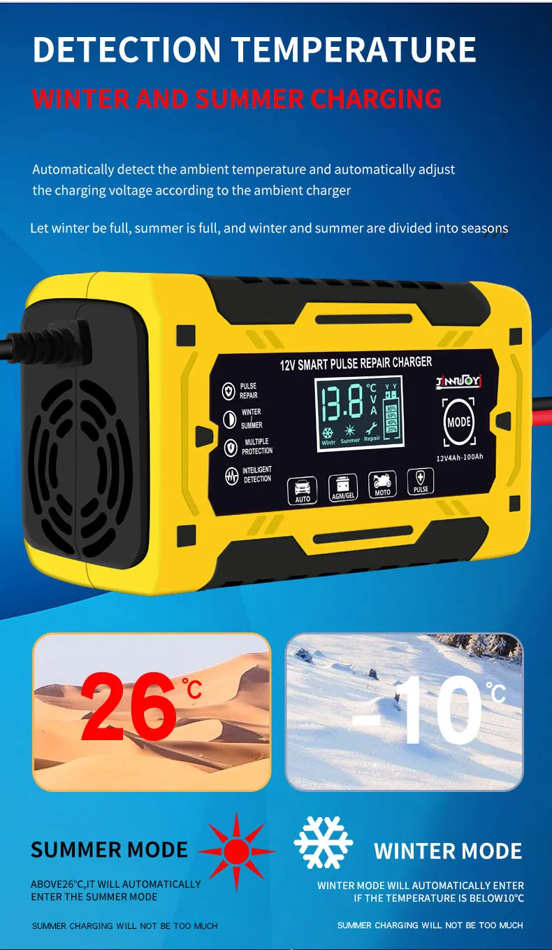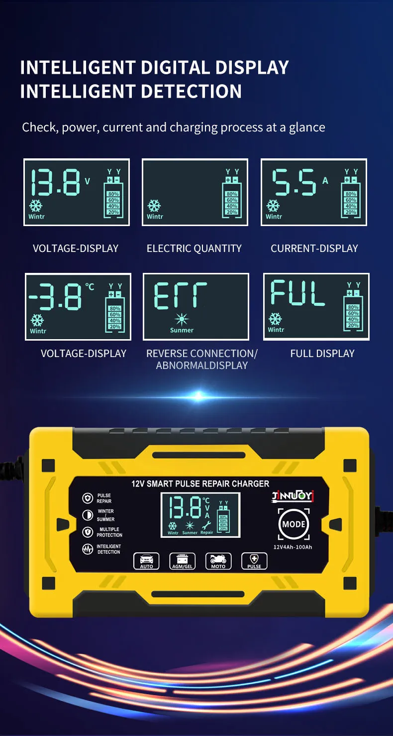 In conclusion, the 12V Car Battery Charger is a must-have for every car owner. It provides fast and efficient charging while offering advanced safety features such as automatic shutoff and reverse polarity protection. Whether you're using it at home, in the garage, or taking it with you on road trips, this charger is designed to make your life easier and ensure your car’s battery stays in excellent condition. Never worry about a dead battery again with the 12V Car Battery Charger.