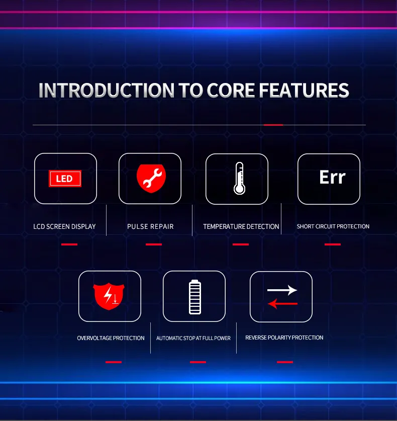 Feature 2: Automatic Shutoff – Once the battery is fully charged, the charger will automatically shut off to prevent overcharging and protect the battery.