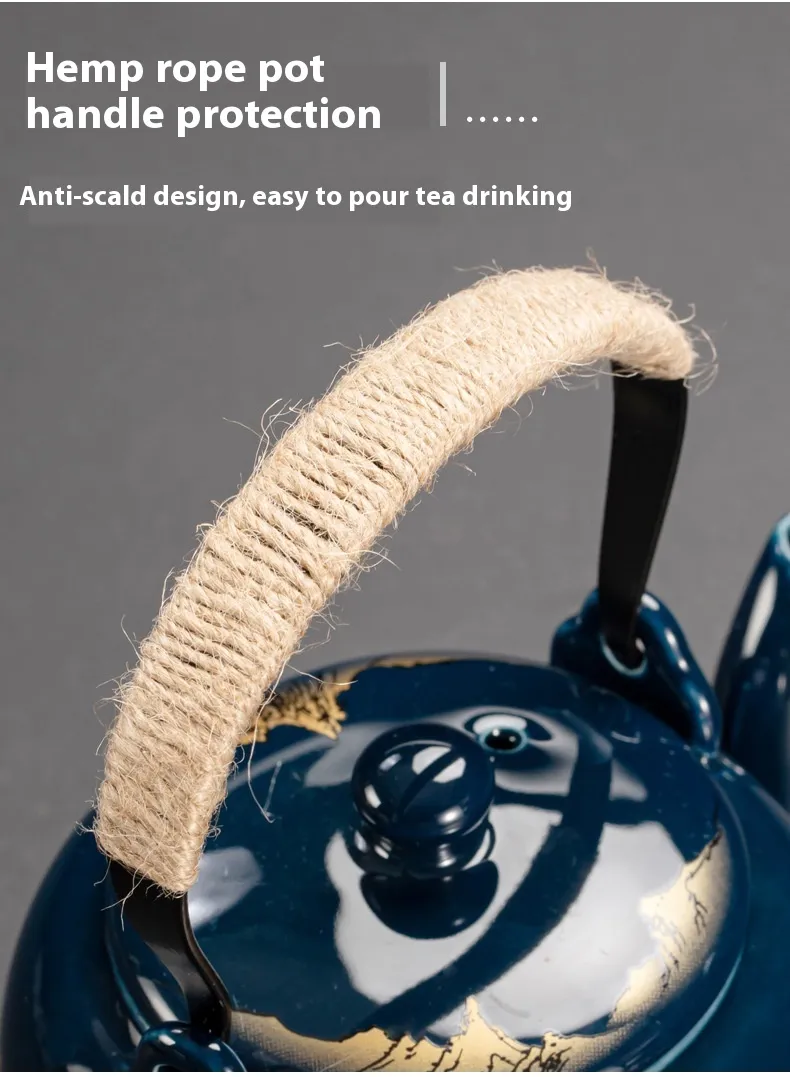 [Product material]: mutton-fat jade porcelain clay, stainless steel filter, handle: cast iron + hemp rope