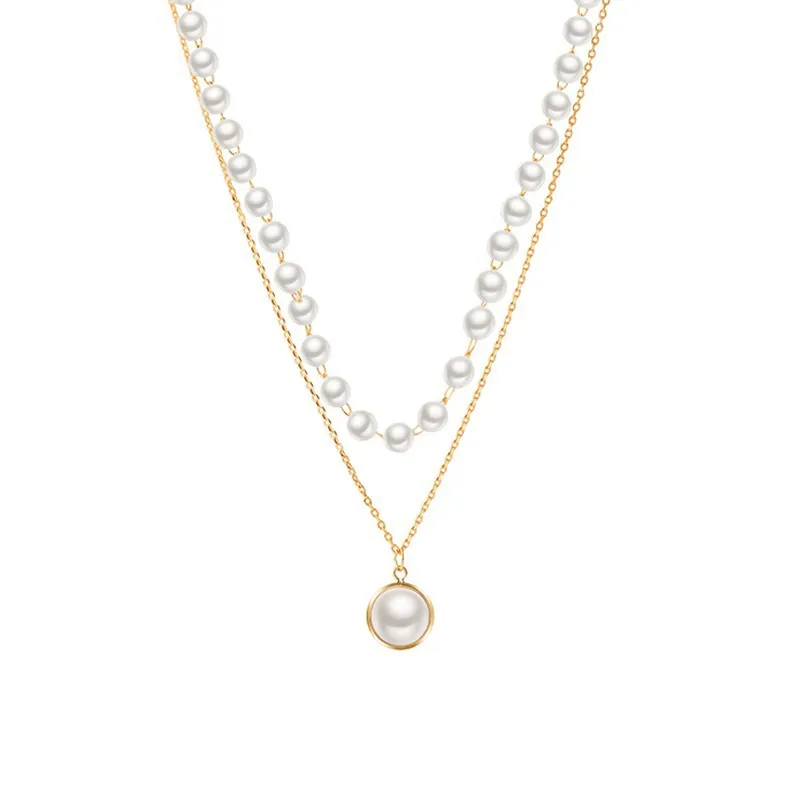 Chain Beaded Multilayer Pearl Pendant Necklace