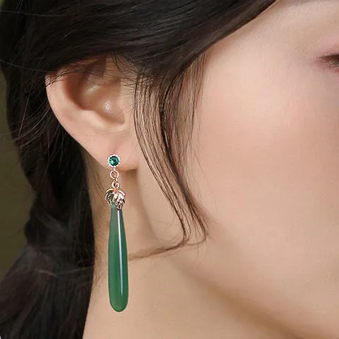 Each stud is crafted with natural chalcedony agate, known for its soothing green tones and calming energy.