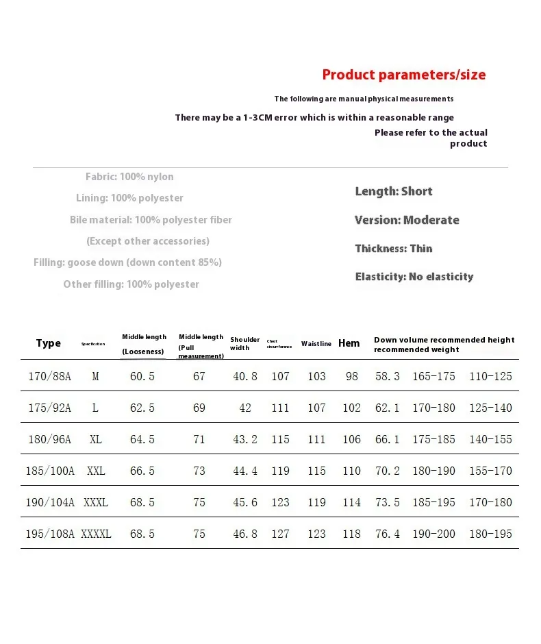 Talla: 170/M, 175/L, 180/XL, 185/2XL, 190/3XL, 195/4XL