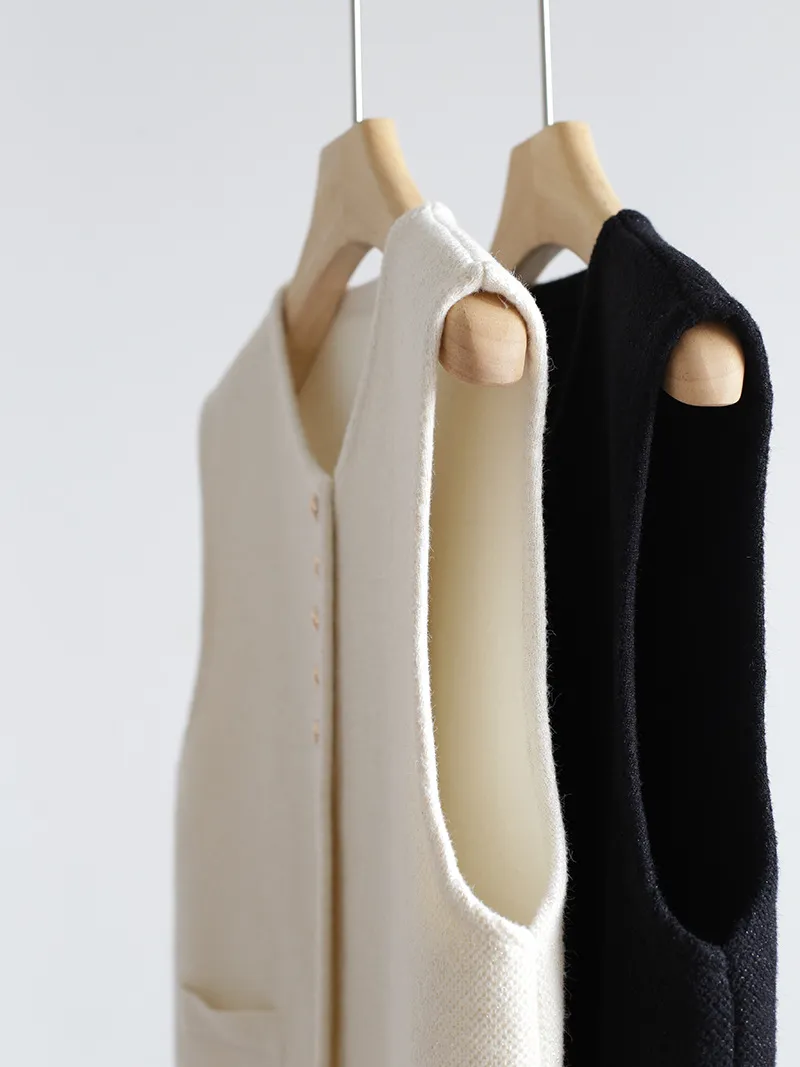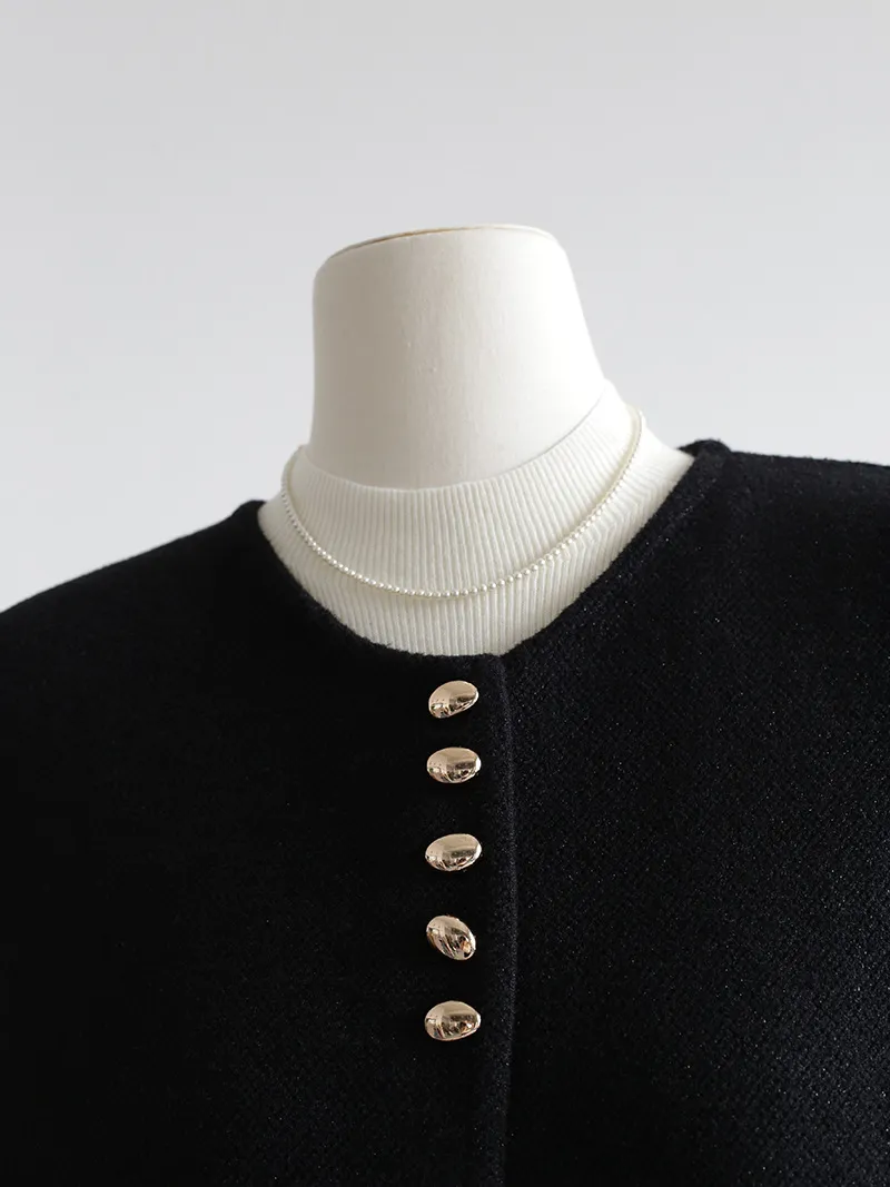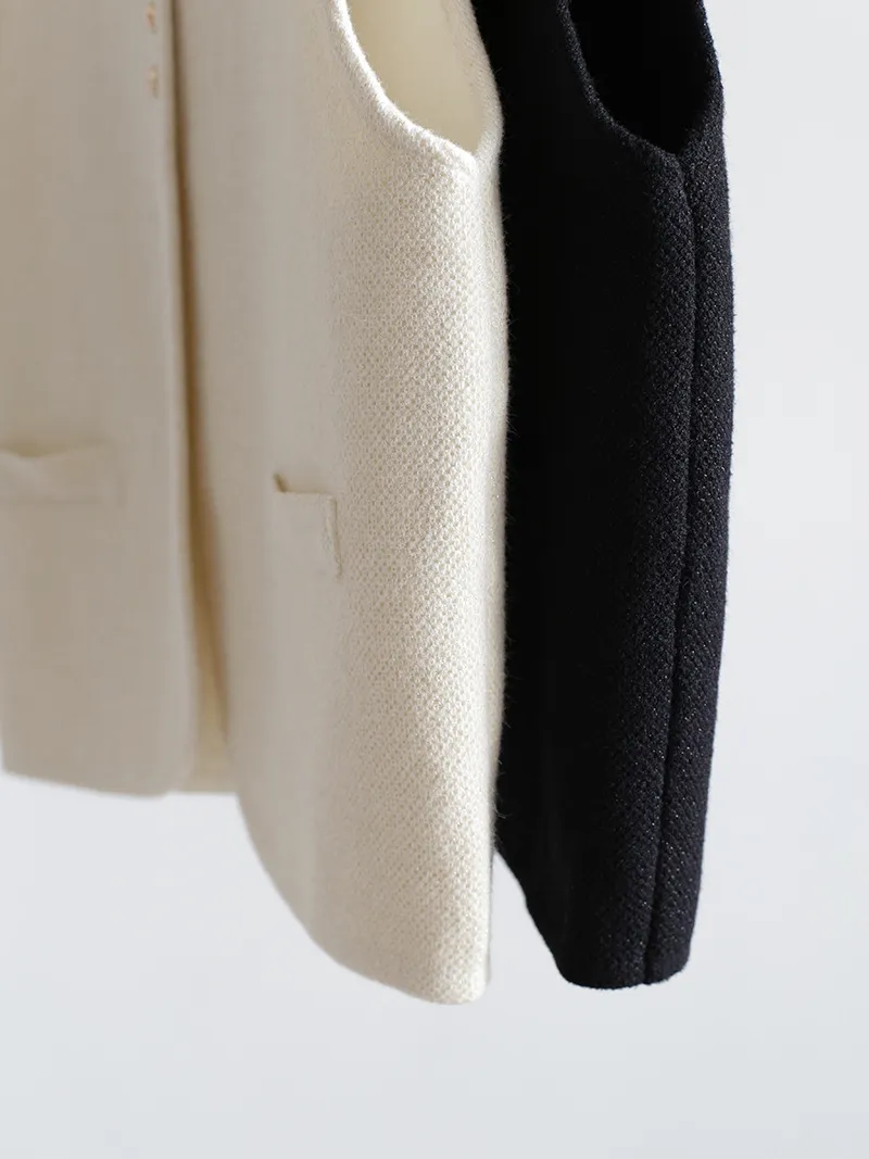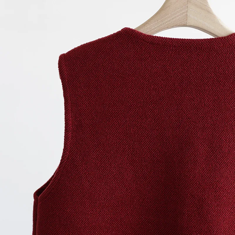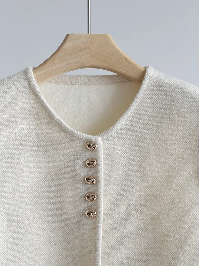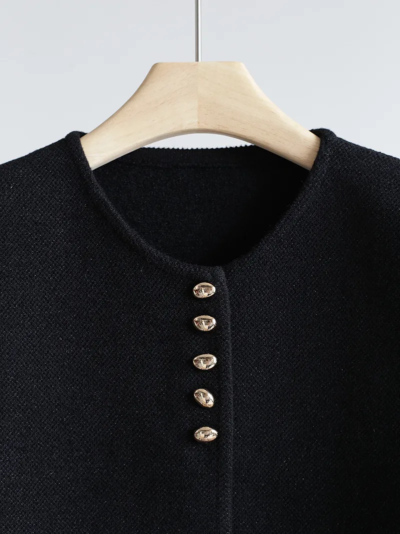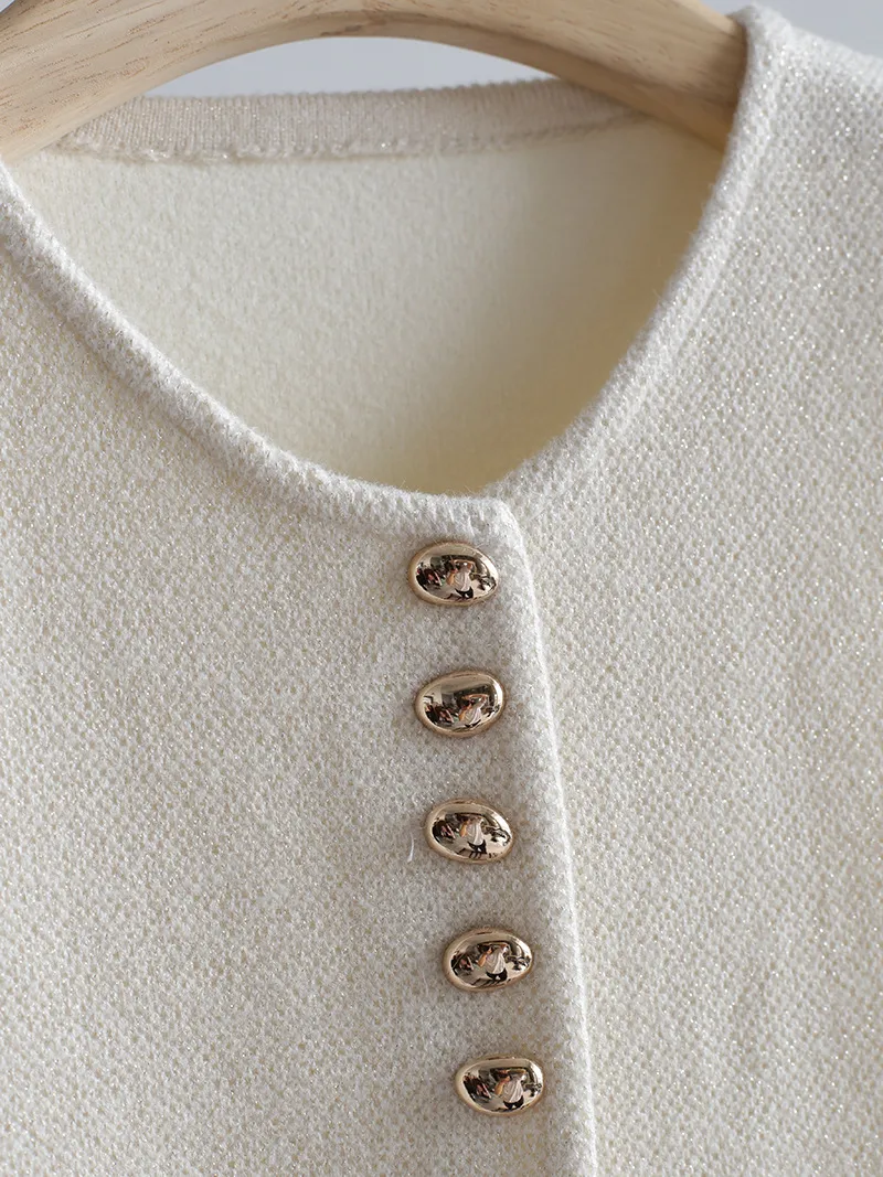 Chaleco de punto de lujo estático con cuello redondo y hebilla dorada estilo Old Money