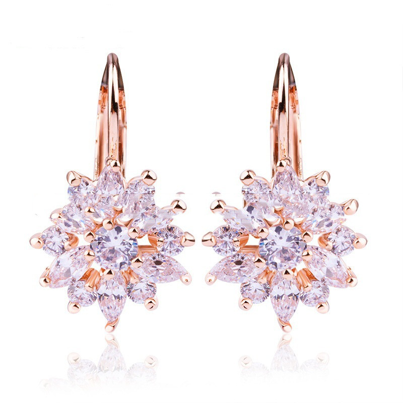 The timeless combination of floral motifs and zircon stones makes these earrings suitable for both casual and formal occasions, ensuring they pair effortlessly with any outfit.