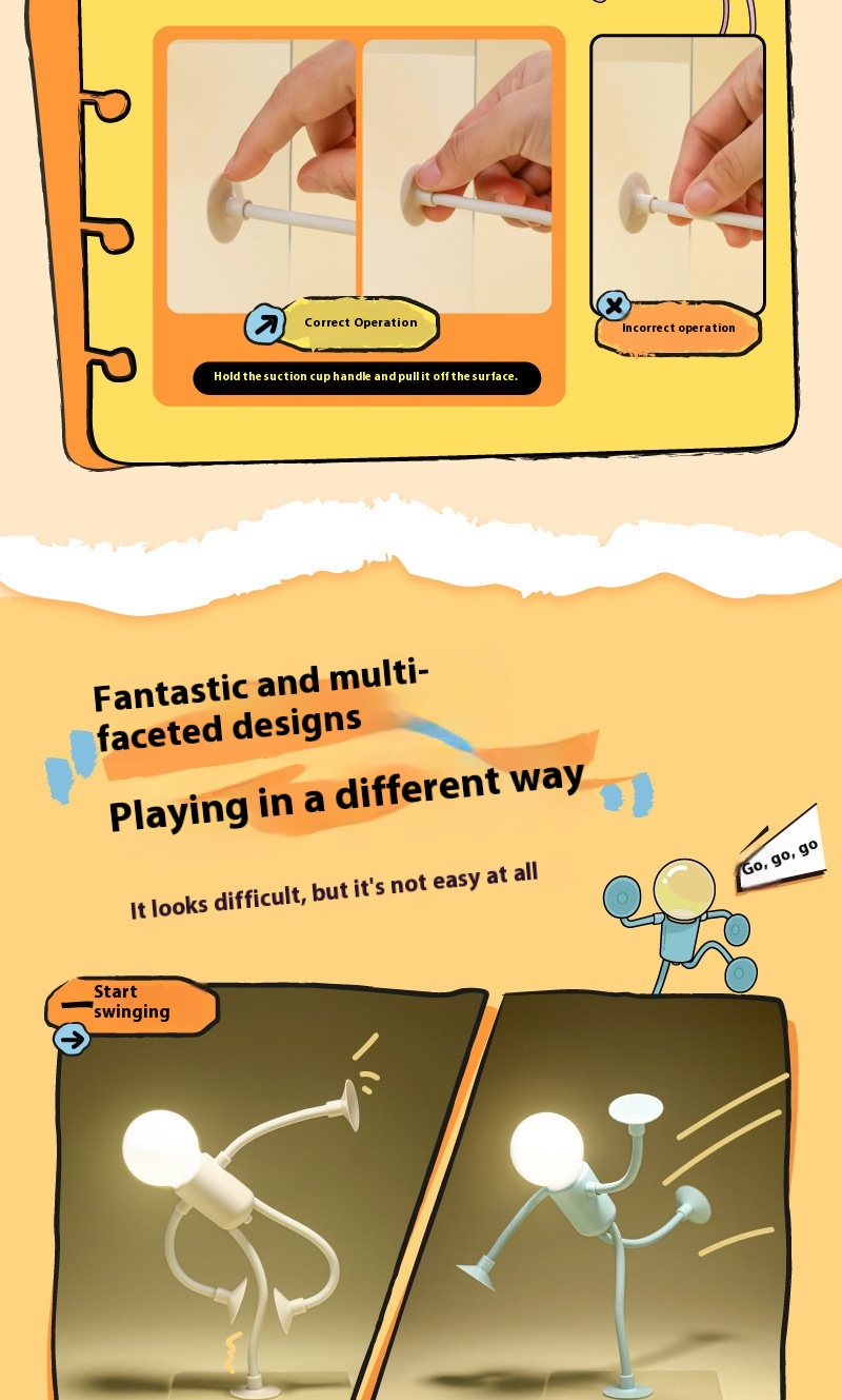 Changeable Shape Funny Sportsman Night Light Versatile Lamp Creative Funny Quirky Button Battery Desk Lamp Ornament Vacuum Suction