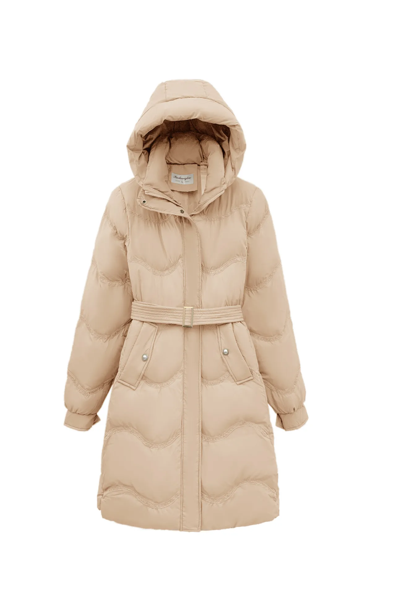 Con una longitud justo por debajo de la rodilla, esta chaqueta ofrece cobertura adicional para mantenerte abrigada y cómoda en climas fríos. Su corte favorecedor complementa varias formas de cuerpo, haciéndola práctica y elegante.