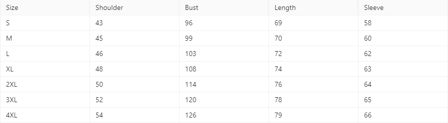 Tallas: M, L, XL, XXL, XXL, XXXXL