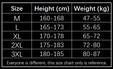 1. Las tallas asiáticas son 1 o 2 tallas más pequeñas que las europeas y americanas. Elija la talla más grande si su talla está entre dos tallas. Puede haber una diferencia de 2 a 3 cm debido a la medición manual.