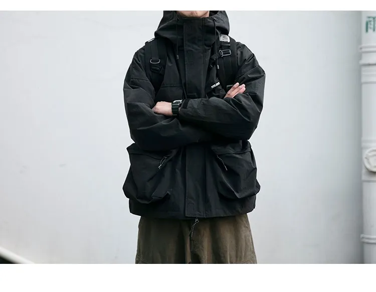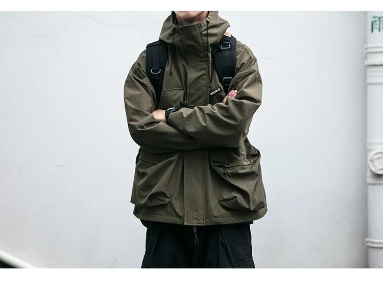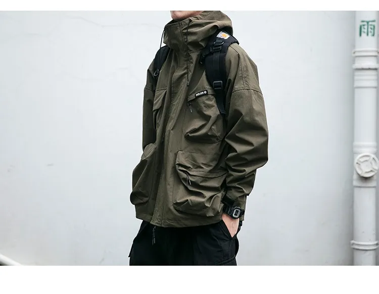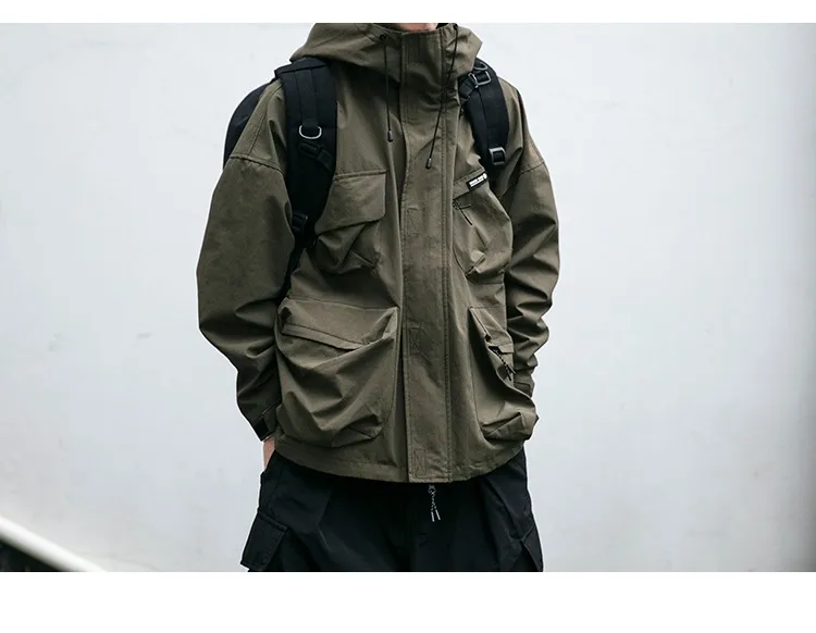 Chaqueta con capucha para hombre, suelta, con bolsillo tridimensional, funcional, cortavientos, ropa informal