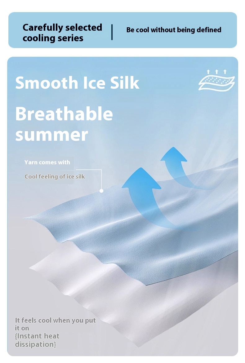 - Tejido Ice Silk: Fabricado con material de seda de hielo transpirable de alta calidad que lo mantiene fresco y cómodo incluso en el clima más caluroso.
