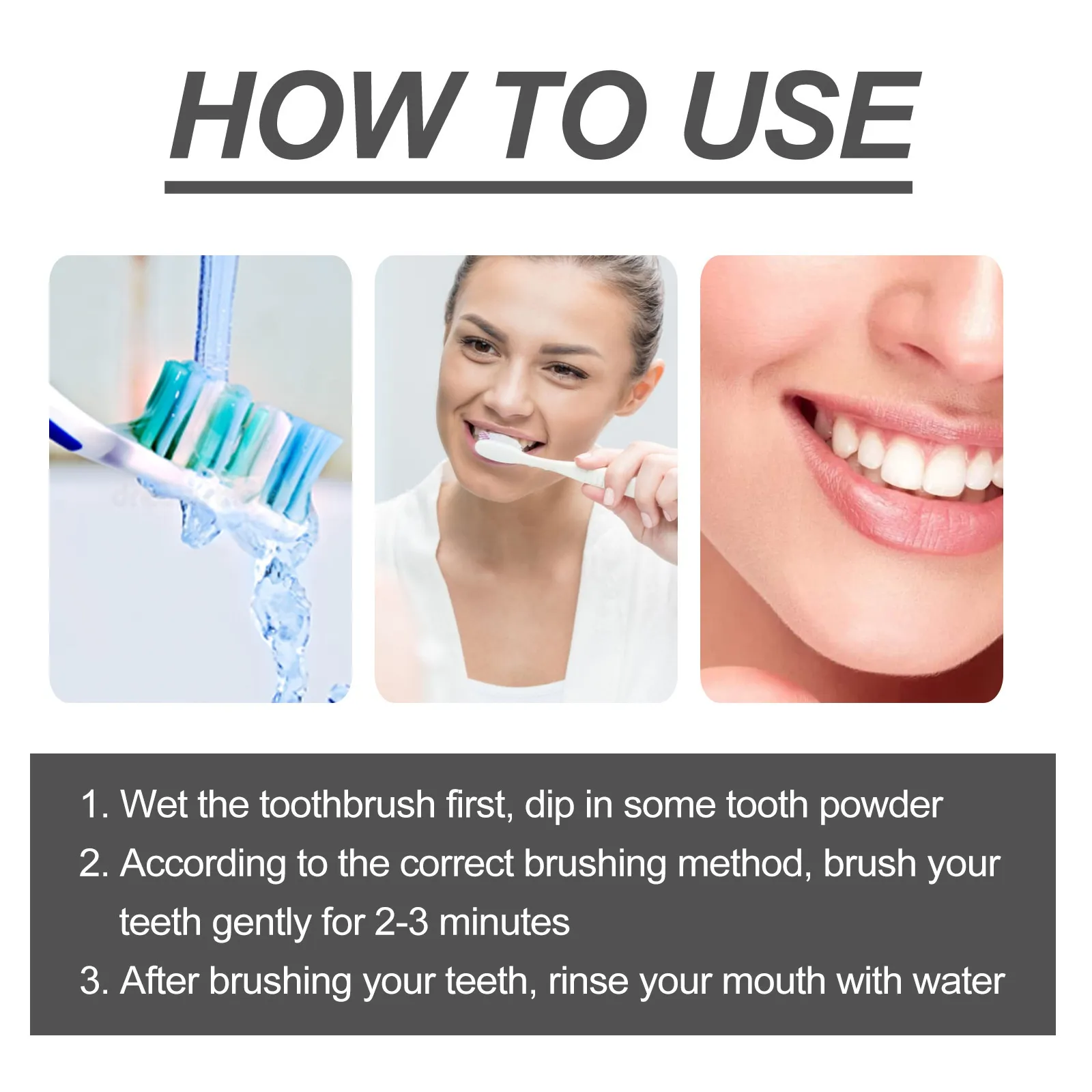 Ingredients: bamboo charcoal powder, pearl extract, mint extract, soda, xylitol