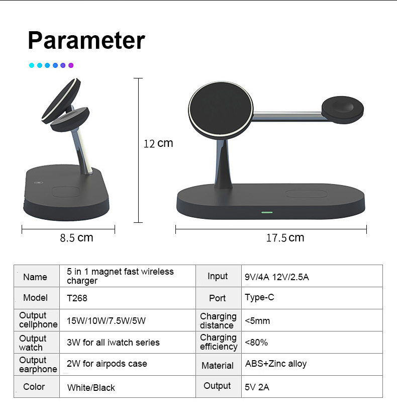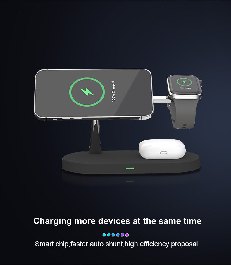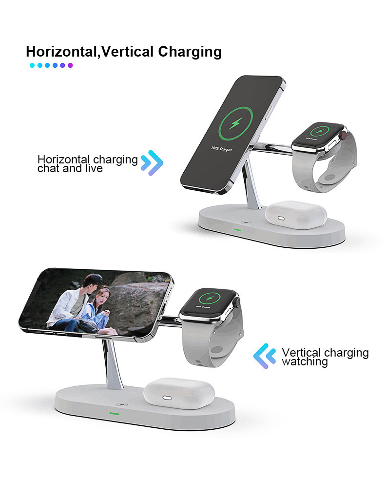 1.【5 in 1 Magnetic Wireless Charger】- The Magnetic wireless charger can charge iPhone, apple watch, and AirPods.