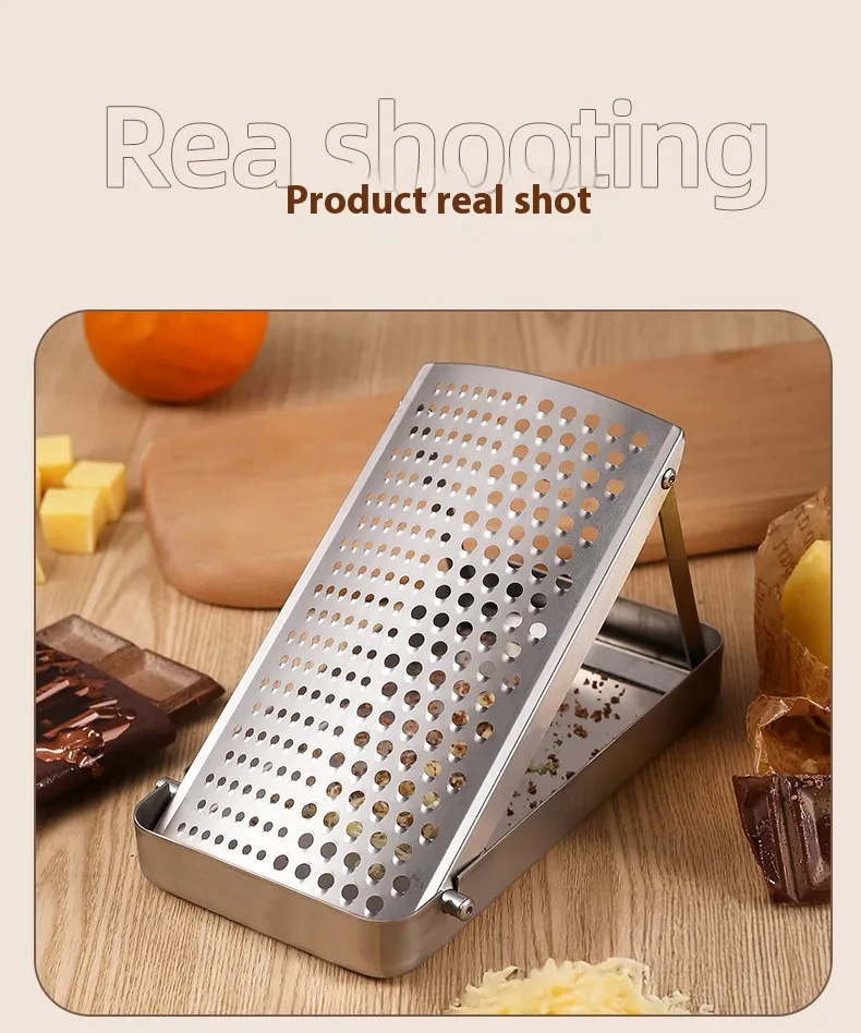 Cheese Grater is designed to grate cheese quickly and evenly, helping improve both texture and presentation in meals. It can also be used for vegetables, chocolate, and other ingredients, making it a versatile kitchen tool.