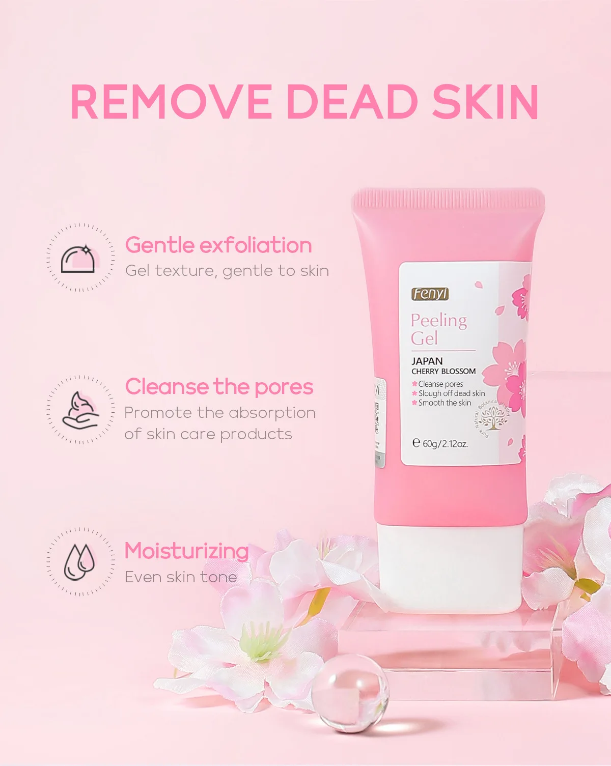 moisturize your skin. Infused with the soothing essence of Cherry Blossom, this exfoliating gel helps to remove dead skin