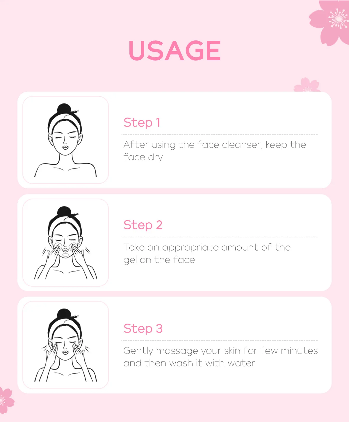 Formulated with Cherry Blossom extract, this exfoliating gel contains natural ingredients that nourish and care for your skin. The gentle formula is free from harsh chemicals, making it suitable for all skin types, including sensitive skin.