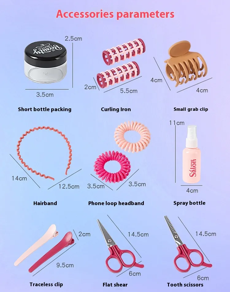 The Children Play House Hair Salon Suit Toys is designed to be easy to store and maintain. The salon suit is machine washable, and the accessories can be wiped clean with a damp cloth. Since all pieces are lightweight and compact, they can be neatly organized and stored away after playtime, keeping the area tidy and ready for the next round of fun.