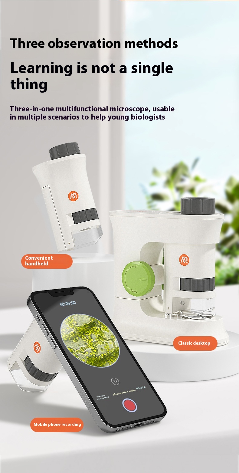 The Children's HD Portable Scientific Experiment Handheld Microscope is an invaluable educational tool that combines high-definition magnification with portability. Perfect for young scientists, it makes exploring the microscopic world both engaging and accessible, fostering a lifelong interest in science and discovery.